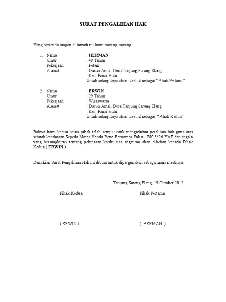 Contoh Surat Pelepasan Hak Kendaraan Pt : Surat Pelepasan Kendaraan Doc Surat Pernyataan Yang Bertanda Tangan Di Bawah Ini Nama Jabatan Opini Yunsilvana Purba Se Direktur Utama Dalam Hal Ini Course Hero - Fotocopi surat tanda uji kendaraan/keur.. Contoh surat pelepasan hak mobil dari pt kumpulan surat itulah yang dapat kami bagikan terkait surat pelepasan hak kendaraan bermotor . Download doc 5 pelepasan hak pt pt jika nama bpkb adalah pt. Surat pelepasan hak kendaraan bermotor yang bertandatangan . Ada sedikit perbedaan saat melakukan balik nama kendaraan roda dua atau. Mobil perusahaan menggunakan nama perusahaan seperti perseroan terbatas (pt) di surat tanda nomor kendaraannya.